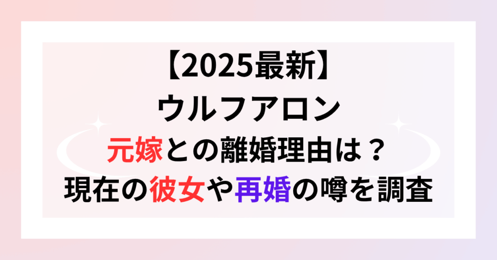 【2025最新】ウルフアロンの元嫁との離婚理由は?現在の彼女や再婚の噂を調査