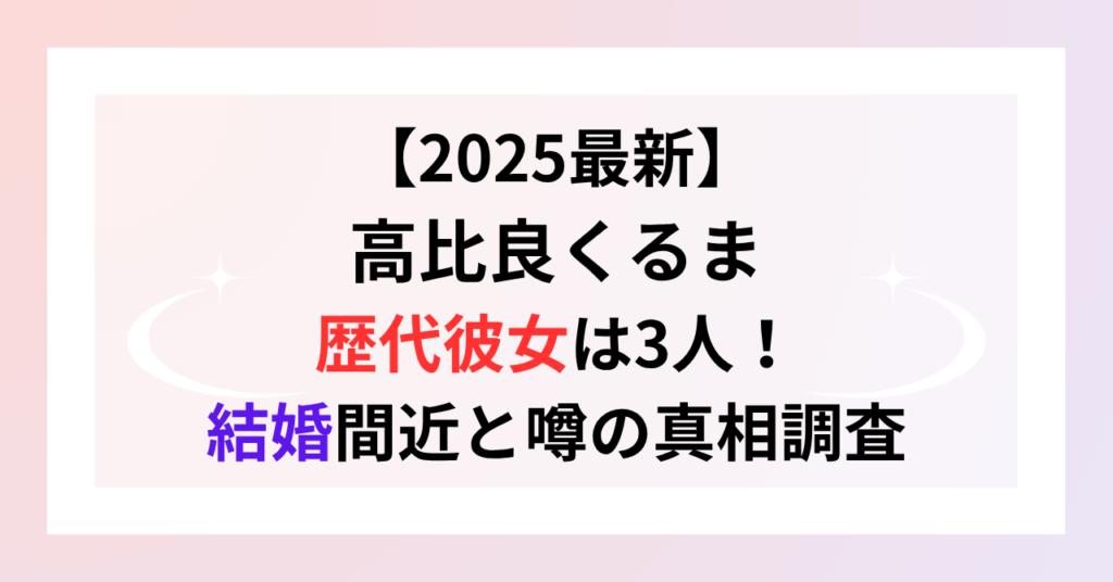 【2025最新】高比良くるまの歴代彼女は3人!結婚間近と噂の真相
