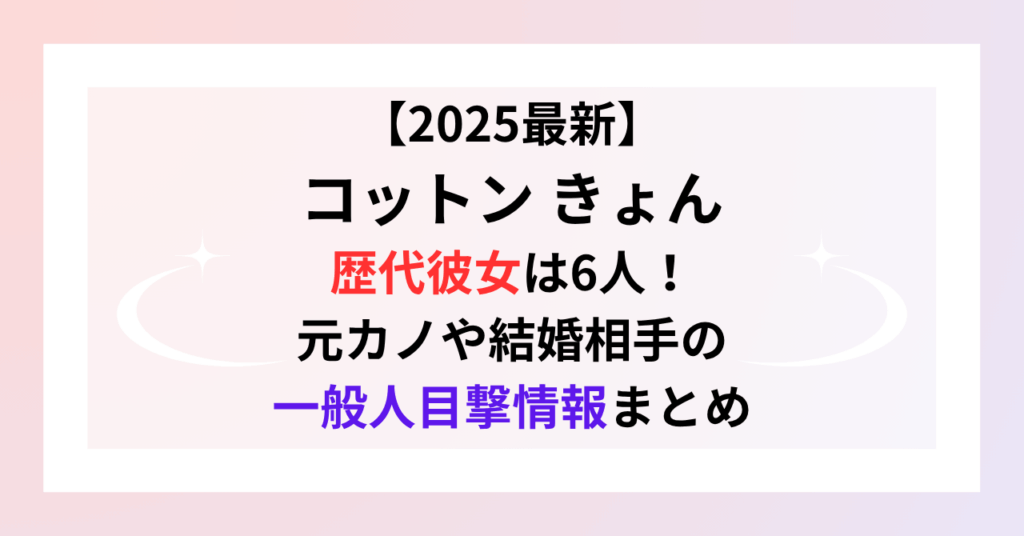 【2025最新】コットン きょんの歴代彼女は6人!元カノや結婚相手の一般人目撃情報まとめ