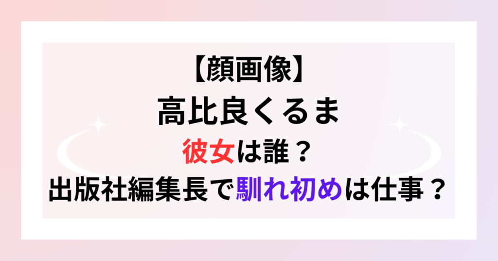 【顔画像】高比良くるまの彼女は誰?出版社編集長で馴れ初めは仕事?
